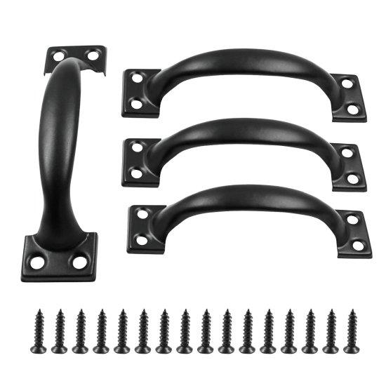Ürün setinde 4 adet metal kulp ve montaj için gerekli 16 adet vida bulunuyor. Kulpların bağlantı noktaları sağlam ve dayanıklı şekilde tasarlanmış. Siyah renk ve mat doku, endüstriyel ve rustik tarzlı mekanlara mükemmel uyum sağlıyor.
