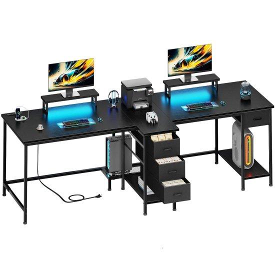 Modern Siyah İki Monitörlü Oyuncu Çalışma Masası