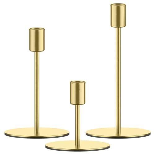 Metal malzemeden üretilen şamdanların her biri farklı yükseklikte, bu da onlara dinamik ve estetik bir görünüm kazandırıyor. Geniş ve düz altın sarısı tabanları, şamdanların dengeli bir şekilde durmasını sağlıyor. İnce ve uzun gövdeleri, klasik bir çizgide tasarlanmış.