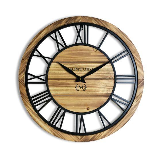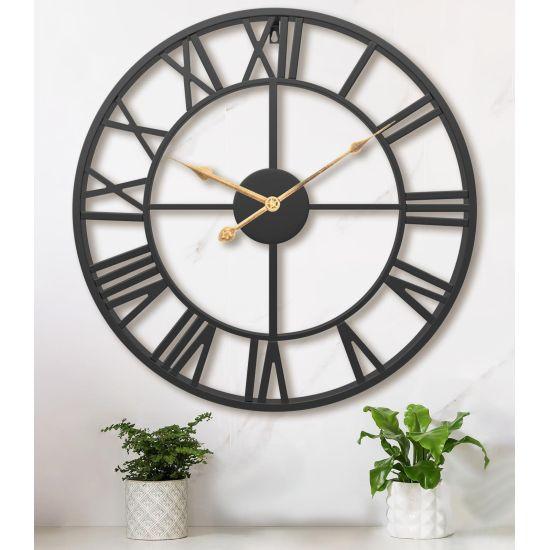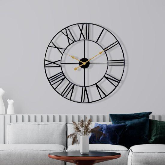Bu etkileyici 60 cm duvar saati, endüstriyel tarzın mükemmel bir örneğidir. Saat, koyu kahverengi bir zemin üzerine yerleştirilmiş Roma rakamları ve açıkta kalan mekanizmasıyla dikkat çeker. Çarklar ve dişliler, saatin merkezinde yer alarak zamanın işleyişini gözler önüne serer.
