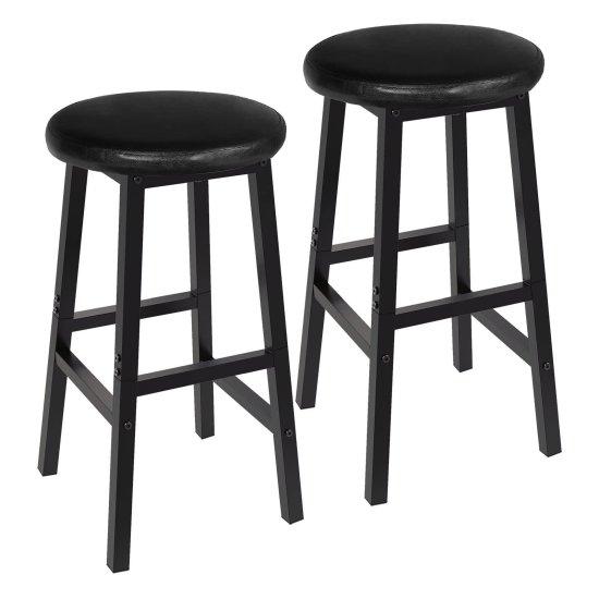 Yüksekliği yaklaşık 65 cm olan sandalyeler, mutfak tezgahları, bar bankoları ve eğlence alanları için ideal. Sağlam ahşap ayakları ve dayanıklı siyah PU deri kaplaması ile uzun yıllar kullanılabilecek nitelikte.