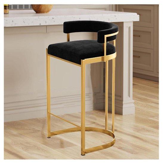 Altın Çerçeveli Siyah Kadife Bar Sandalyesi