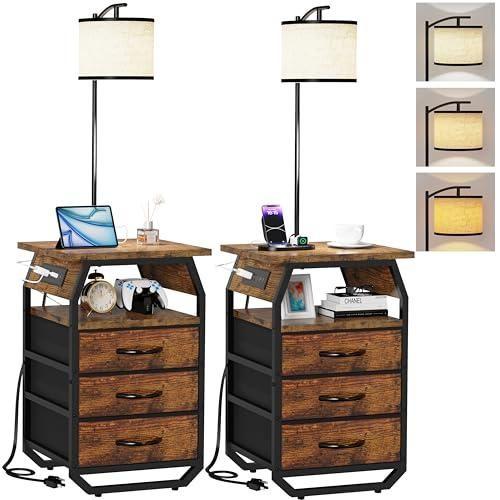 Rustik Kahverengi Abajur ile Entegre Çok Amaçlı Yan Sehpa