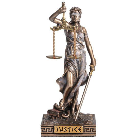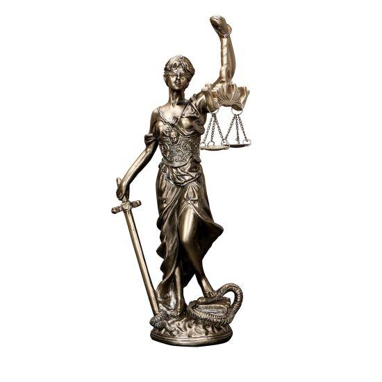 Bu etkileyici bronz adalet terazisi, hukuk ve adaletin evrensel sembolünü zarif bir şekilde canlandırıyor. 29 cm yüksekliğinde, 28 cm genişliğinde ve 12 cm derinliğinde olan bu heykel, masanızda veya rafınızda göz alıcı bir odak noktası oluşturacak mükemmel boyutlara sahip.