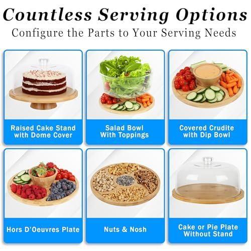 Kapağın hafif ve kırılmaz tasarımı, taşıma ve saklama işlemlerini kolaylaştırıyor. Ahşap alt kısım, doğal görünümüyle her türlü mutfak ve sofra dekorasyonuna uyum sağlıyor. Pasta, kek, muffin gibi tatlıların yanı sıra soğuk mezeler için de ideal bir sunum aracı.