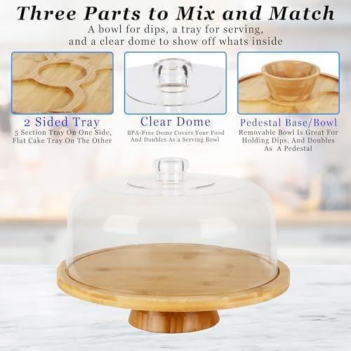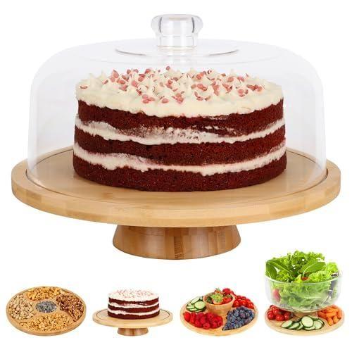 Bu ürün, mutfaklarda ve ev içi organizasyonlarda benzersiz bir çözüm sunan çok işlevli bir sunumluk. Doğal bambu ahşaptan üretilen alt taban, yumuşak tonları ve sıcak görünümüyle dikkat çekiyor. Üzerindeki şeffaf akrilik kapak, kekleri, tatlıları ve diğer yiyecekleri taze ve koruma altında tutuyor.