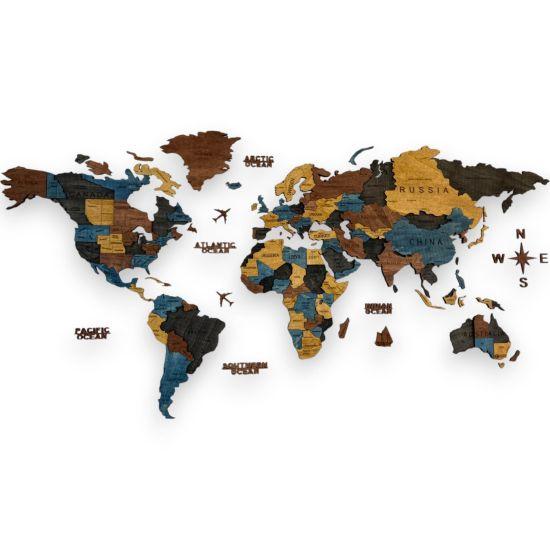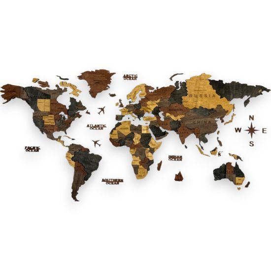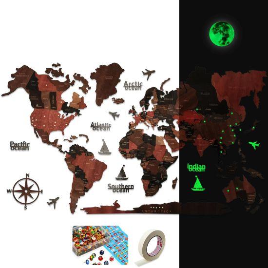 Bu büyüleyici 3D ahşap dünya haritası, seyahat tutkunları ve dünya gezginleri için özel olarak tasarlanmış eşsiz bir duvar dekorasyonudur. 120 x 200 cm boyutlarıyla, geniş duvar yüzeyleri için ideal bir seçimdir.