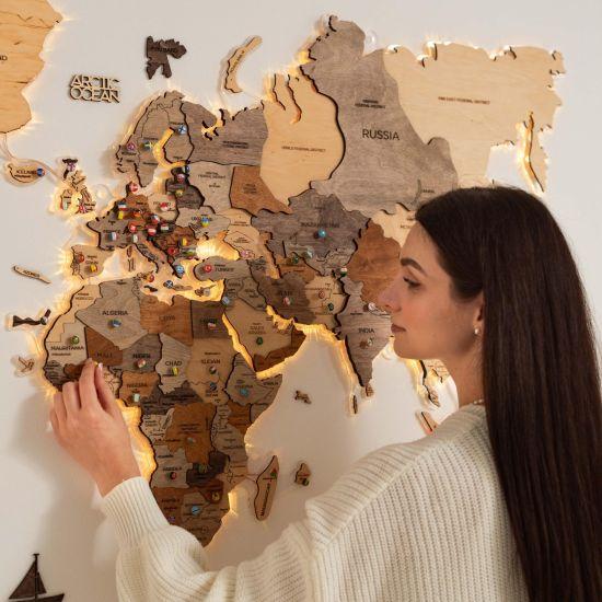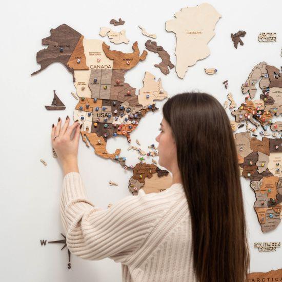 Gezginin Anı Duvarı Ahşap Dünya Haritası