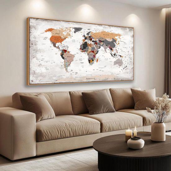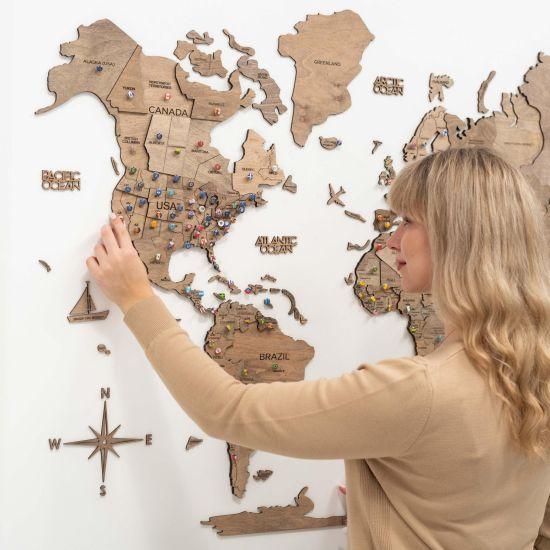 Bu ahşap dünya haritası, sadece bir dekorasyon öğesi değil, aynı zamanda interaktif bir sanat eseridir. Ziyaret ettiğiniz yerleri işaretleyebilir, gelecekteki seyahat planlarınızı görselleştirebilir veya çocuklarınıza dünya coğrafyasını öğretmek için kullanabilirsiniz.