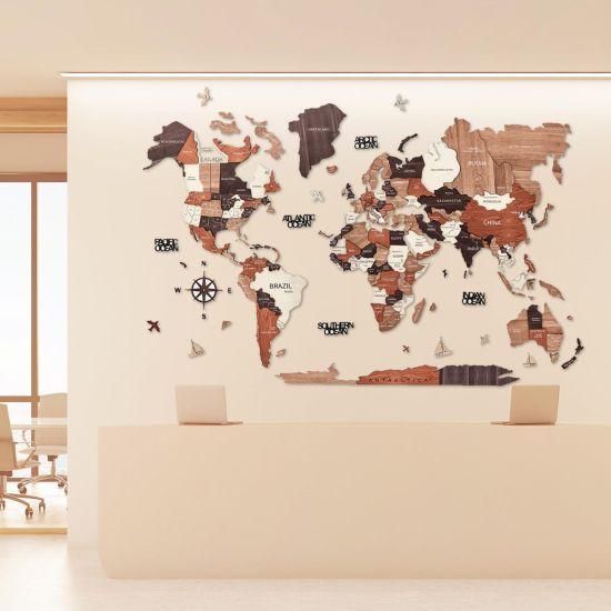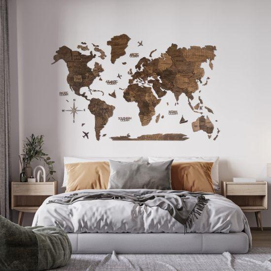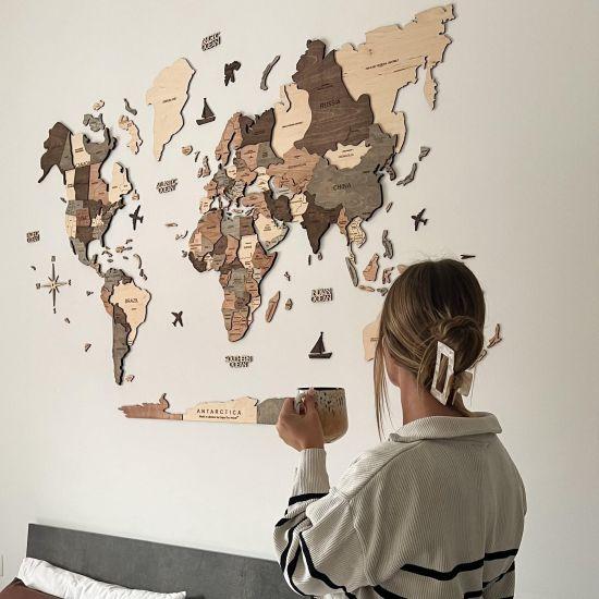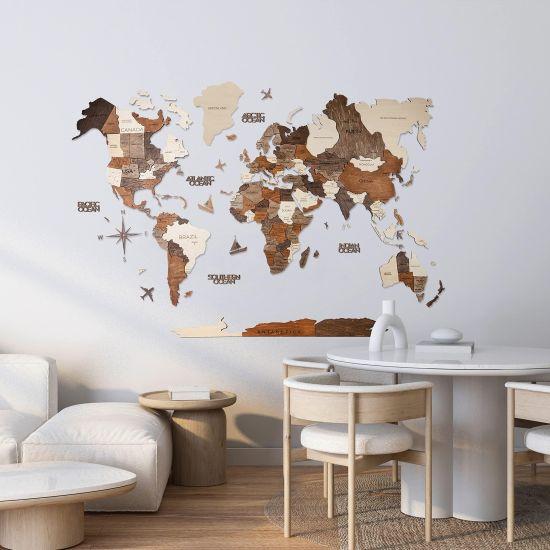 Oturma odanızda, çalışma alanınızda veya yatak odanızda sergileyebileceğiniz bu ahşap dünya haritası, mekanınıza karakter ve sıcaklık katar. Aynı zamanda, misafirlerinizle sohbet başlatmak için mükemmel bir odak noktası oluşturur.