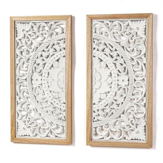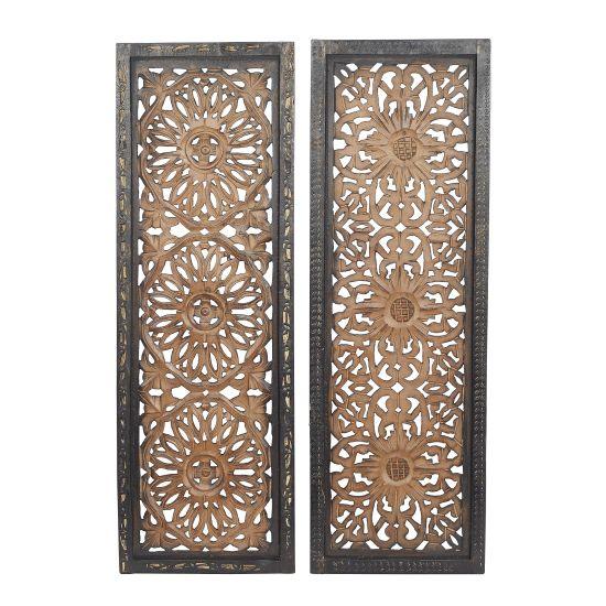 Özenle elle oyulmuş bu ahşap duvar panosu, kahverengi tonlarıyla her dekorasyon stiline kolayca uyum sağlar. İki parçalık set halinde gelen bu dekoratif ürün, oturma odası, yatak odası veya koridor gibi evin herhangi bir duvarında rahatlıkla kullanılabilir. Zarif detaylarıyla duvarlarınıza şıklık katar ve ortama estetik bir hava verir.