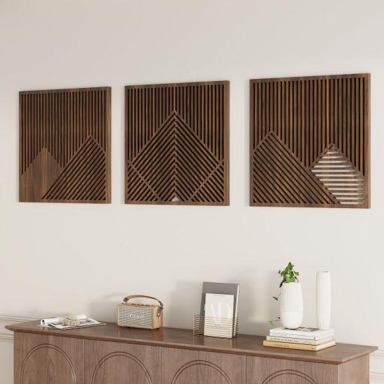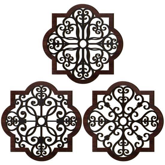 Kahverengi El Oyması Ahşap Duvar Dekorasyon Paneli