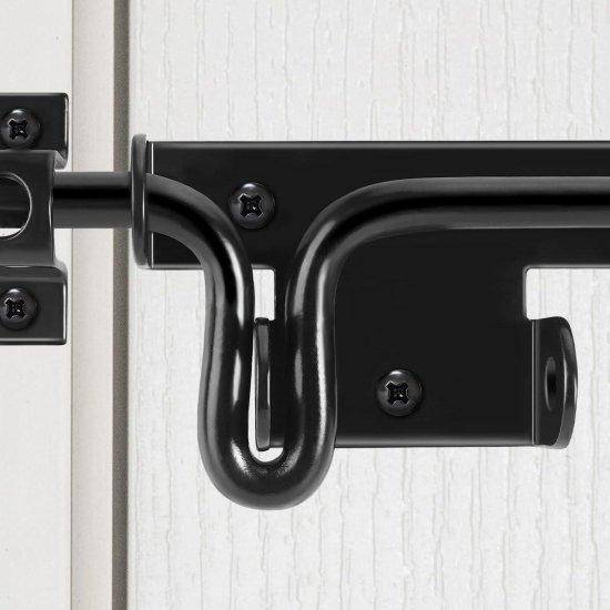 Bu dayanıklı kapı kilidi, bahçe çitlerinden ahşap kulübelere kadar her yerde güvenli bir kullanım sağlar. Sağlam siyah metal tasarımı, dış mekanlarda uzun süre dayanıklı olacak şekilde üretilmiştir.