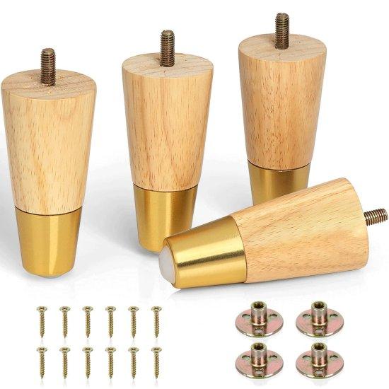 Altın Uçlu Doğal Ahşap Mobilya Ayağı Seti