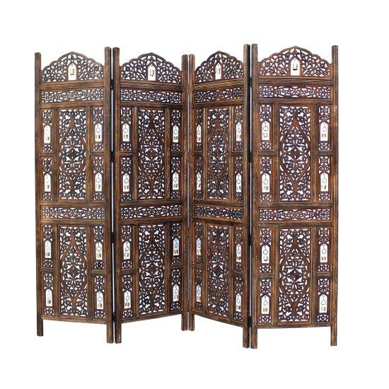 El Oyması Antik Kahverengi 4 Panelli Ahşap Seperatör
