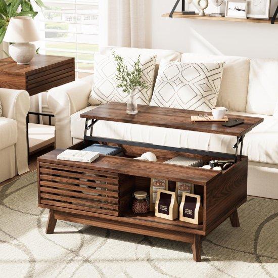 Modern Ahşap Yükseltilir Kapaklı Depolama Üniteli Orta Sehpa