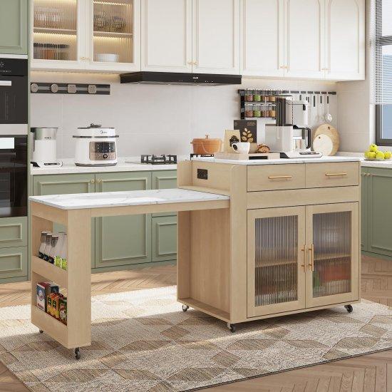 Bu hareketli mutfak dolabı, modern ve pratik mutfak çözümleri arayanlar için ideal bir aksesuar. Beyaz rengi ve ahşap tezgahıyla göz dolduran ürün, mutfaklara şıklık ve işlevsellik katıyor.