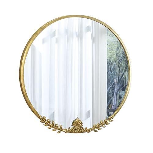 Vintage Altın Yapraklı Yuvarlak Dekoratif Ayna