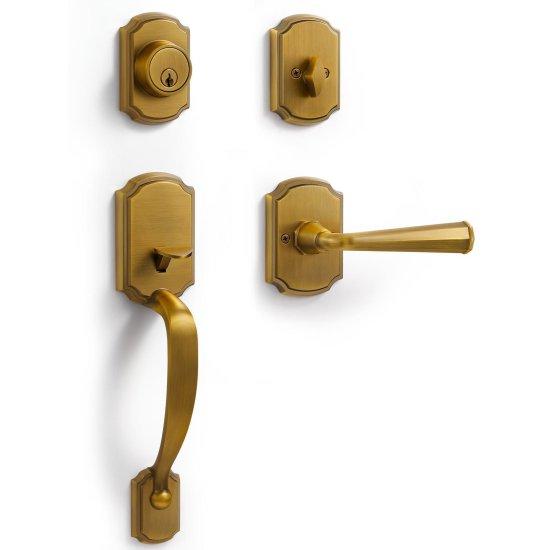 Antik Pirinç Kaplamalı Modern Kapı Kolu Seti