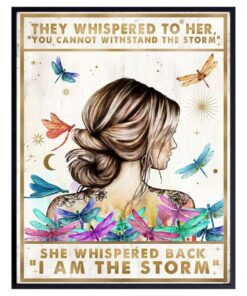 Kompozisyonun üst kısmında “They whispered to her, ‘You cannot withstand the storm'” (Ona şöyle fısıldadılar, ‘Sen fırtınaya dayanamazsın’) yazıyor. Alt kısımda ise kadının cevabı yer alıyor: “She whispered back ‘I am the storm'” (O fısıldayarak cevap verdi ‘Fırtına benim’).