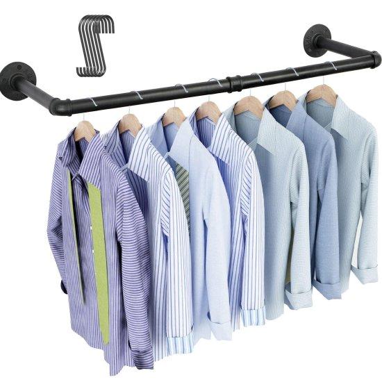 Bu ürün, modern endüstriyel tasarımıyla dikkat çeken bir giysi askısı aparatıdır. Siyah renkli metal borulardan üretilmiş olup, sert ve dayanıklı bir yapıya sahiptir. Mat siyah yüzeyi, her tür dekorasyon tarzıyla uyum sağlayan nötr bir görünüm sunar.