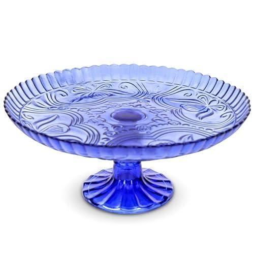 Zarif ve benzersiz tasarımıyla öne çıkan bu dekoratif aksesuar, mutfağınıza ve sofranıza şıklık katacak bir üründür. Canlı mavi tonunda üretilen cam pasta standı, klasik vintage tarzı ile dikkat çekiyor.