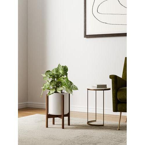 Ürün, 25 cm çapında geniş bir seramik saksıdan ve dayanıklı ahşap ayaklardan oluşur. Ahşap ayaklar, sıcak ton ve dokulu yapısıyla dikkat çekici bir görünüm sergiler. Saksının beyaz rengi, minimal ve temiz bir estetik yaklaşım sunar.