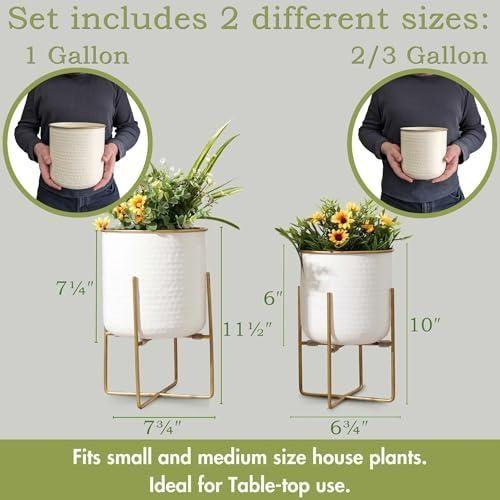 Büyük boy saksı yaklaşık 19 cm yüksekliğinde ve 18 cm genişliğinde, küçük boy saksı ise 15 cm yüksekliğinde ve 16 cm genişliğinde. Altın renkli ayaklar üzerinde yükselen saksılar, mekanlarınıza şıklık katan bir tasarıma sahip.