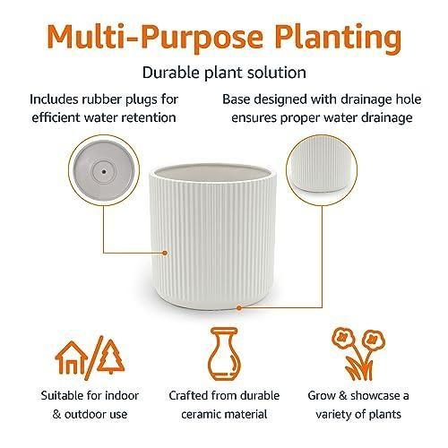 Saf beyaz renkte üretilen saksı, zarif dikey çizgileriyle minimalist bir görünüm sergiliyor. Yumuşak dokulu seramik yüzeyi, pürüzsüz ve mat bir görünüm oluşturuyor. Çizgili dış yüzey, ürüne derinlik ve estetik bir karakter kazandırıyor.