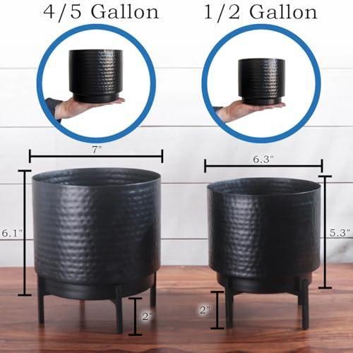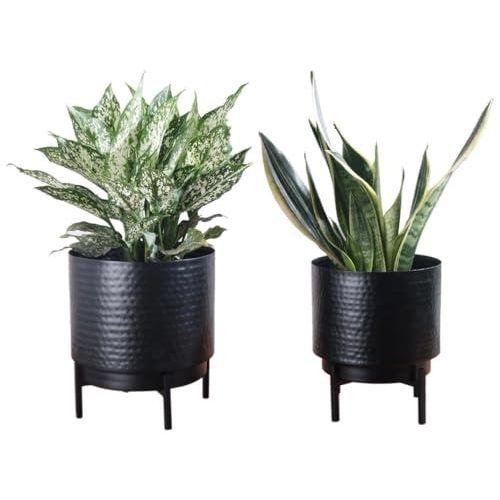 Modern Desenli Siyah Metal Çok Amaçlı Bitki Saksısı Seti