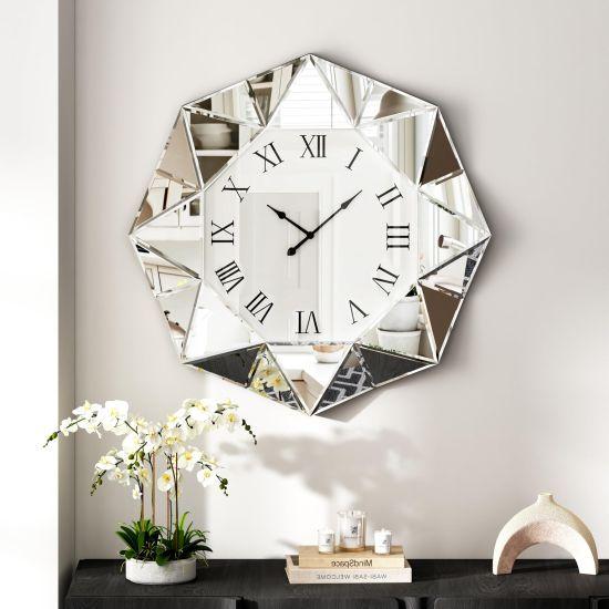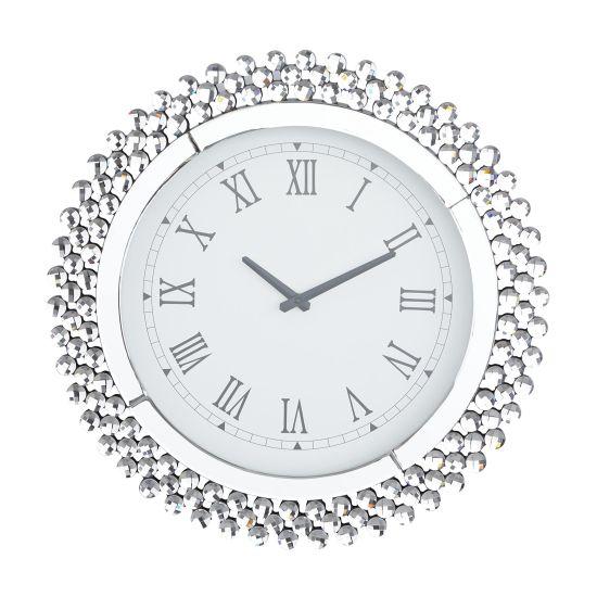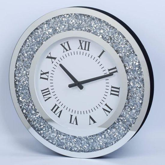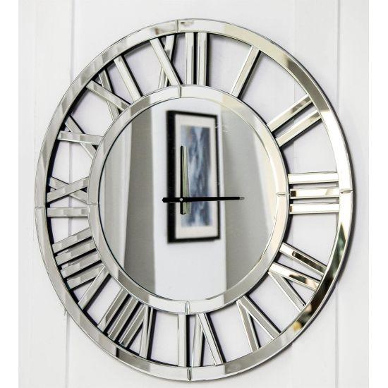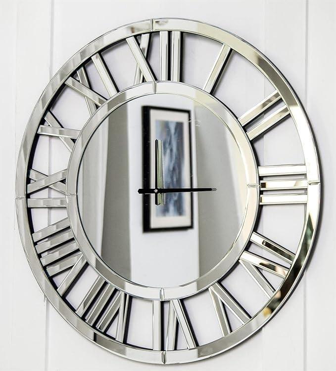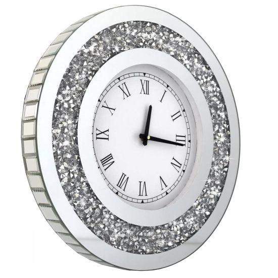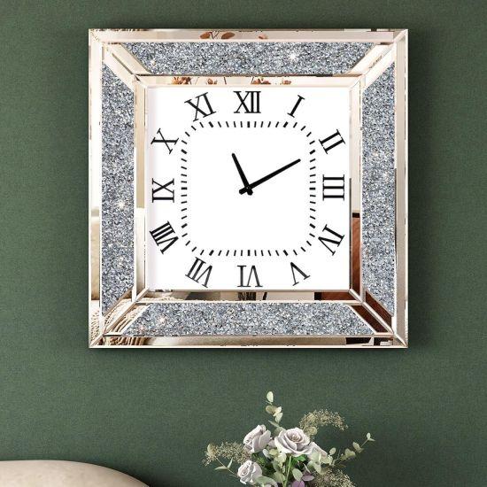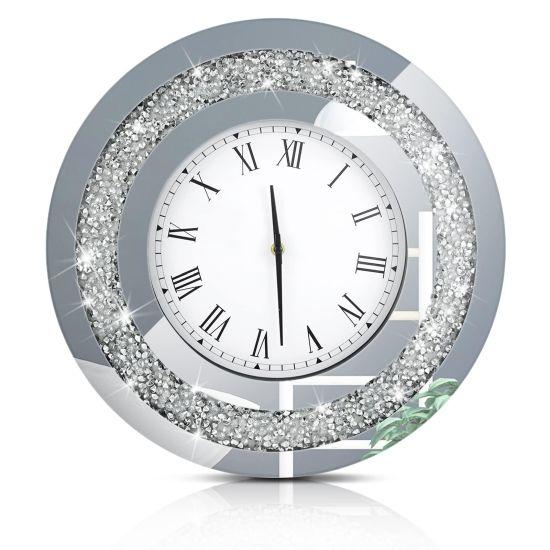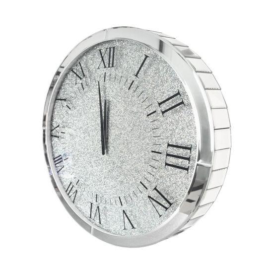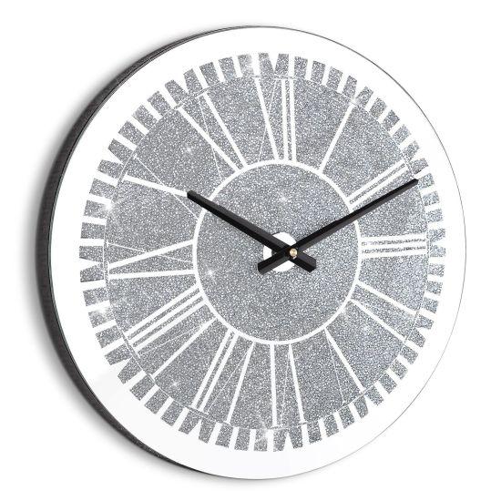 Pırıltılı Gümüş Çerçeveli Roma Rakamlı Aynalı Duvar Saati