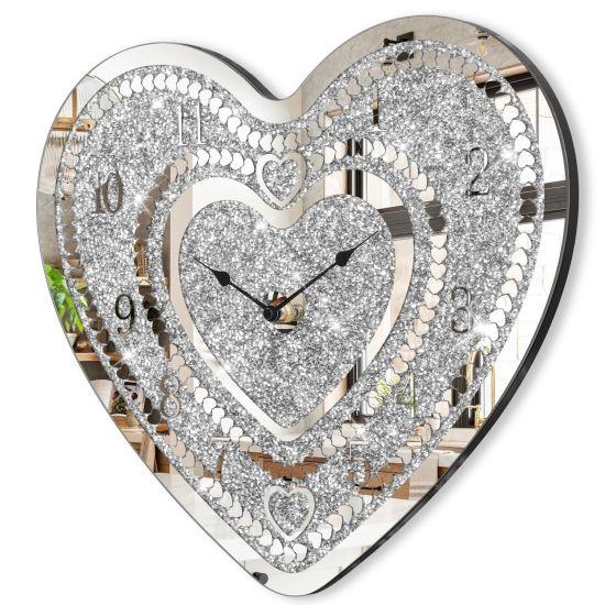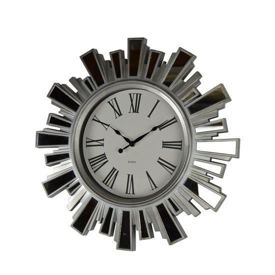 Gümüş Işıltılı Ayna Çerçeveli Duvar Saati