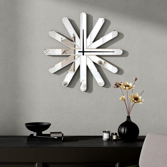 Modern Gümüş Çerçeveli Aynalı Duvar Saati