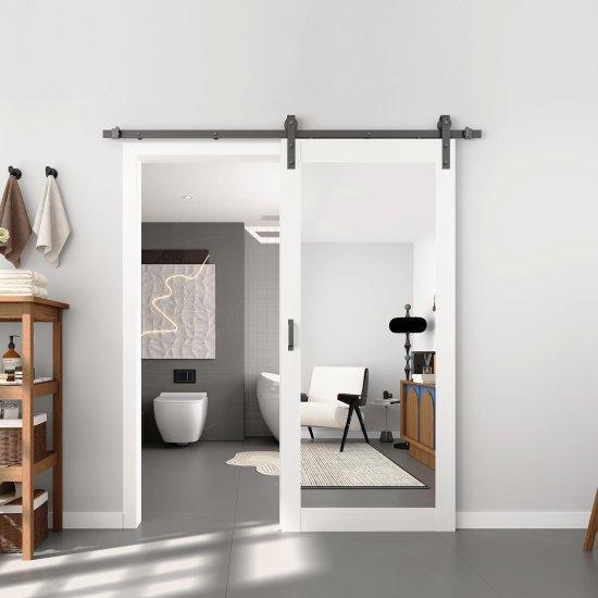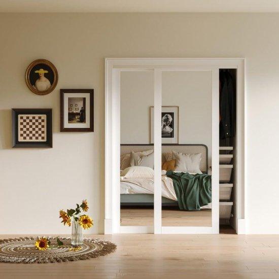 Beyaz Çerçeveli Modern Aynalı Sürgü Kapı Seti