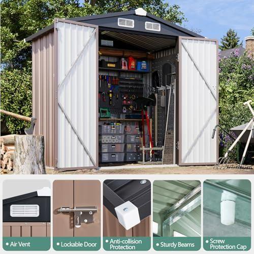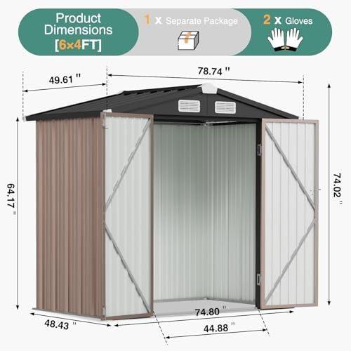 Çift kanatlı kapıları geniş açılım sağlayarak bahçe aletlerinize kolay erişim imkanı sunuyor. Kapıların üzerinde siyah renkli sağlam bir kilit mekanizması bulunuyor. Yan tarafında küçük bir havalandırma penceresi mevcut, bu özellik iç mekanda nem birikmesini engelliyor.