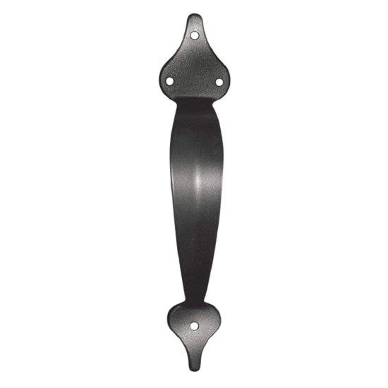 Bu dekoratif bahçe kapısı kolu, endüstriyel tasarımıyla dikkat çeken bir aksesuar. Siyah renkli metal malzemeden üretilmiş olup, mat ve pürüzsüz bir yüzey dokusuna sahip. Geleneksel ve zarif bir görünüm sergileyen bu kapı kolu, yaklaşık 25 cm uzunluğunda.