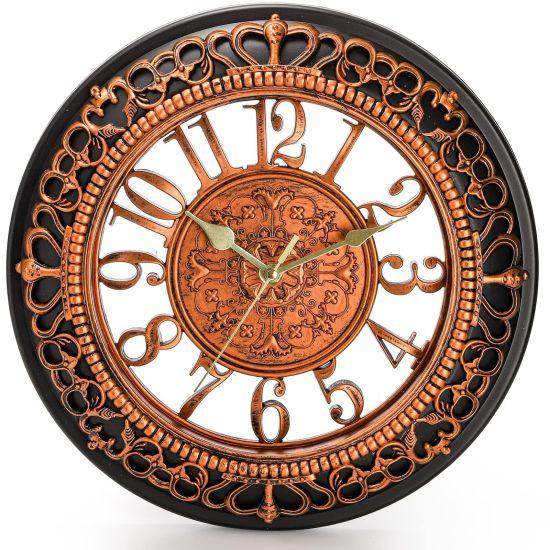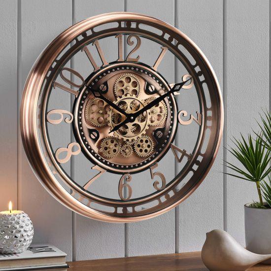 Saatin en dikkat çekici özelliği, bakır tonlarındaki zengin ve sıcak renk paleti. Dış çerçeve ve rakamlar, antik bakır görünümüyle vintage bir hava katarken, iç mekanizma parlak bakır tonlarıyla modern bir dokunuş sağlıyor. Bu renk seçimi, saati hem klasik hem de çağdaş iç mekanlarla uyumlu hale getiriyor.