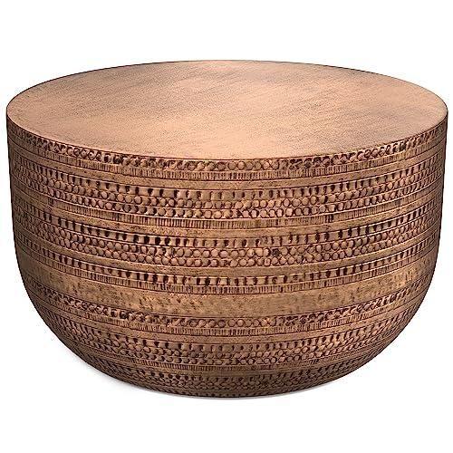 El İşçiliği Bakır Desenli Yuvarlak Dekoratif Sehpa
