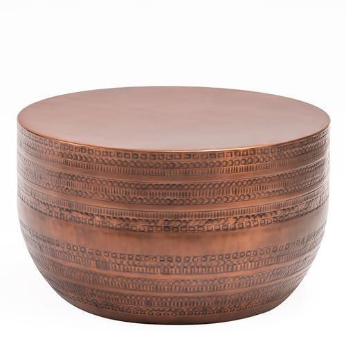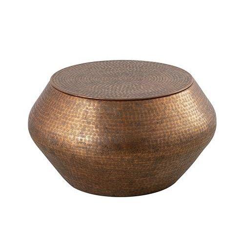 El İşçiliği Antik Bakır Desenli Yuvarlak Sehpa
