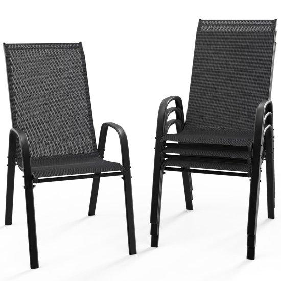 Sandalyelerin kolçakları ergonomik şekilde tasarlanmış. Yüksek sırt kısmı, uzun süreli oturumlarda bile rahat bir destek sağlıyor. Siyah rengi her türlü dış mekan dekorasyonuyla uyum sağlıyor.