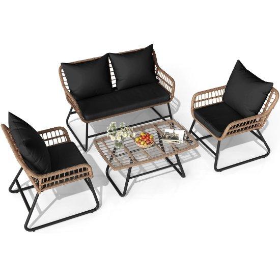 Siyah Hasır Örme Dış Mekan 4lü Balkon Mobilya Seti