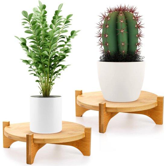 Yaklaşık 16 cm genişliğinde olan stand, yuvarlak bir alt tabla ve dört ince dikey ayaktan oluşuyor. Bambu malzemesi sayesinde hafif ama oldukça dayanıklı bir aksesuar. Orta yükseklikte konumlandırılmış alt tabla, saksının zeminine temas etmesini engellerken aynı zamanda su sızıntılarını da önlüyor.