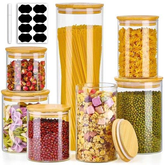 Doğal Bambu Kapaklı Cam Depolama Seti