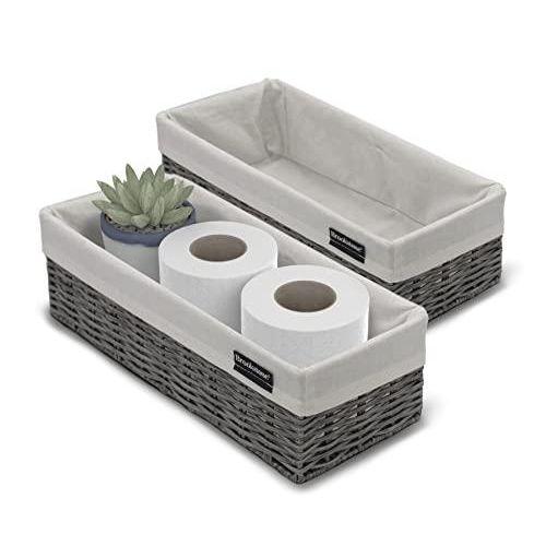 Yaklaşık 30x20x10 cm ölçülerinde olan sepet seti, hasır örme tekniğiyle üretilmiş. Dayanıklı ve hafif malzemeden imal edildiği için uzun yıllar kullanılabilir. İki adet sepetten oluşan set, banyo tezgahı, tuvalet tankı üstü veya dolap içi düzenleme için ideal.