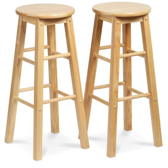 Bu ürün, mutfak, bar veya yemek alanları için ideal doğal ahşap bar taburelerinden oluşan bir set. Yaklaşık 74 cm yüksekliğinde, yuvarlak oturma yüzeyli ve dört köşeli bacaklı klasik bir tasarıma sahip.