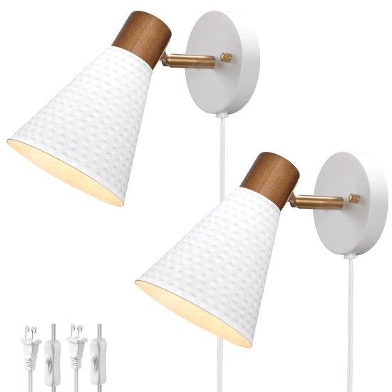 Her bir aplik, yumuşak dokulu beyaz metal gövde ve ahşap dokunuşlu üst kısımdan oluşmaktadır. Ürün, prizli elektrik kablosuyla kolayca kullanılabilir ve farklı mekanlara monte edilebilir. Yatak odaları, oturma odaları ve koridorlar için ideal bir aydınlatma çözümü sunar.