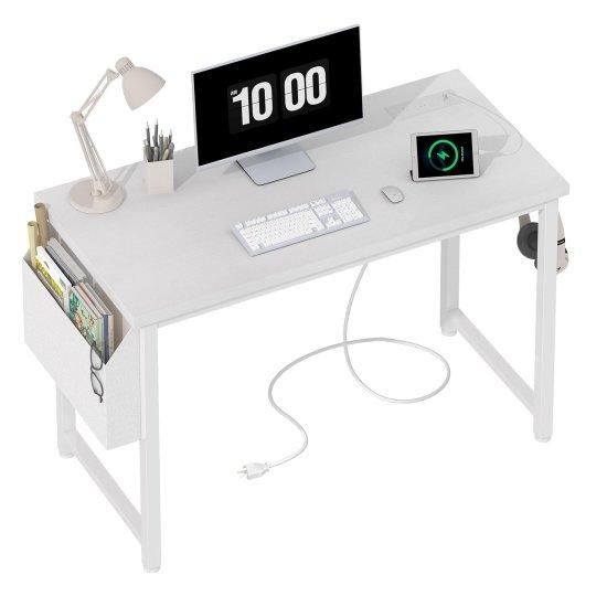 Modern Beyaz Çalışma Masası Şarj İstasyonlu