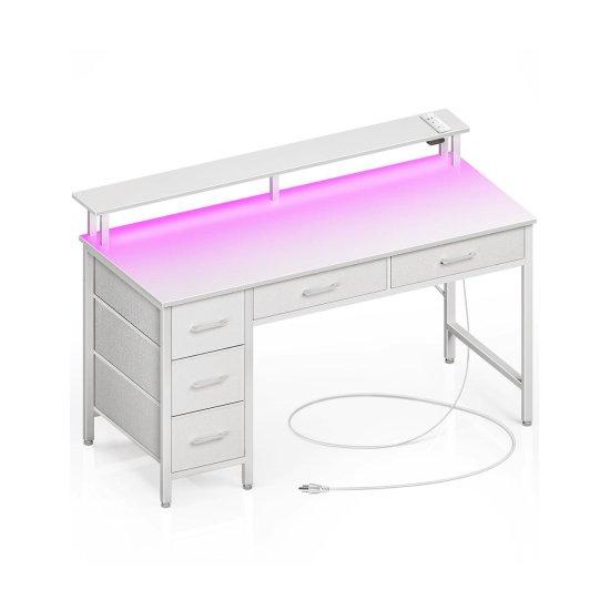 Modern Beyaz Çalışma Masası Üst Monitör Rafı LED Aydınlatmalı
