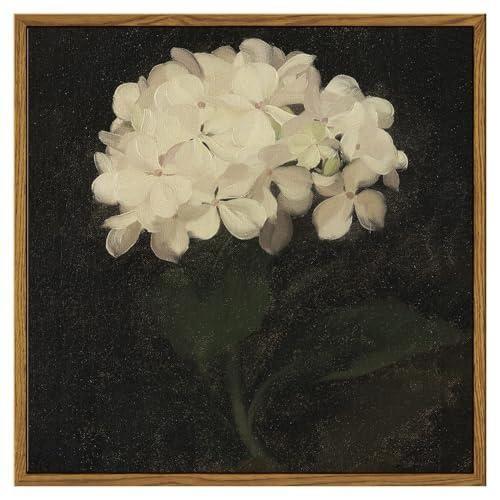 Ahşap Çerçeveli Beyaz Ortanca Çiçeği Tablo