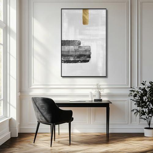 Modern ve minimalist bir tablo, iç mekanlara zarafet ve estetik bir dokunuş katıyor. Siyah, gri ve altın tonlarında soyut desenli bu tablo, zarif bir dekoratif aksesuar olarak dikkat çekiyor.